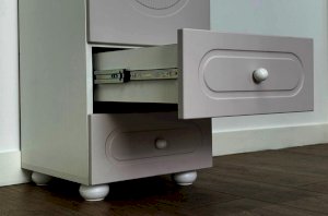 Корпус выполнен из ЛДСП толщиной 16 мм, фасад изготовлен из МДФ в плёнке ПВХ и декорирован фрезеровкой, подчёркивающей стиль серии Милана. Оригинальные круглые ручки и опоры дополняют дизайн, придавая шкафу аккуратный и современный внешний вид.